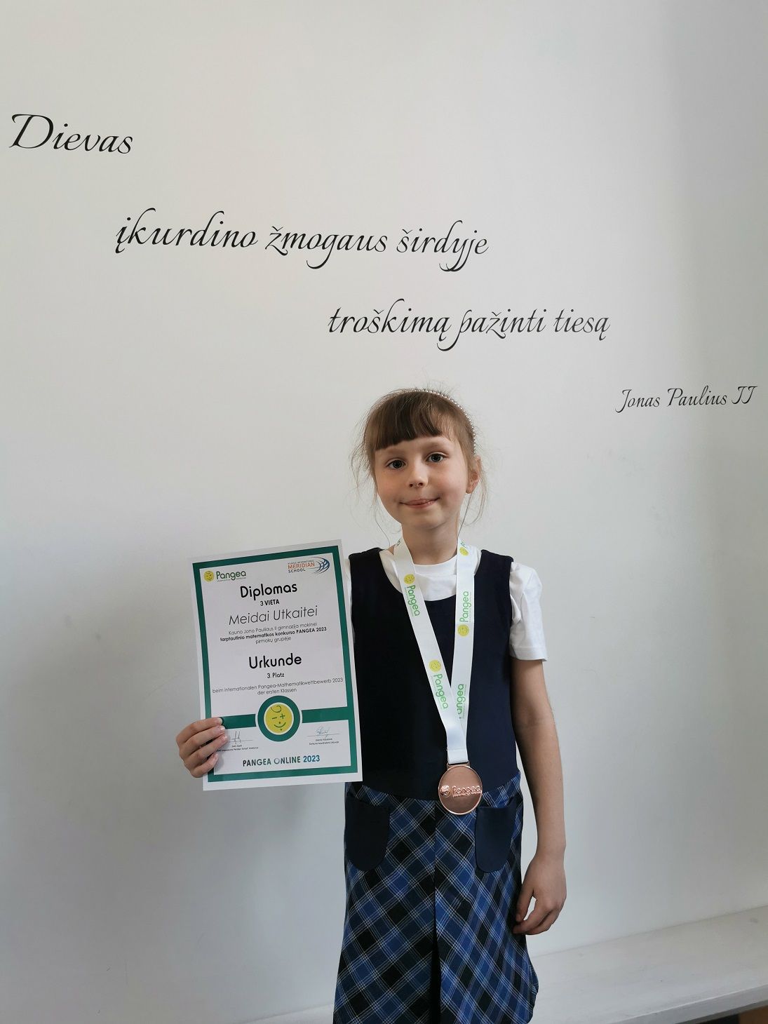 Sveikiname 1d klasės mokinę Meidą Utkaitę tarptautiniame matematikos konkurse ,,Pangea" užėmusią 3-iąją vietą.