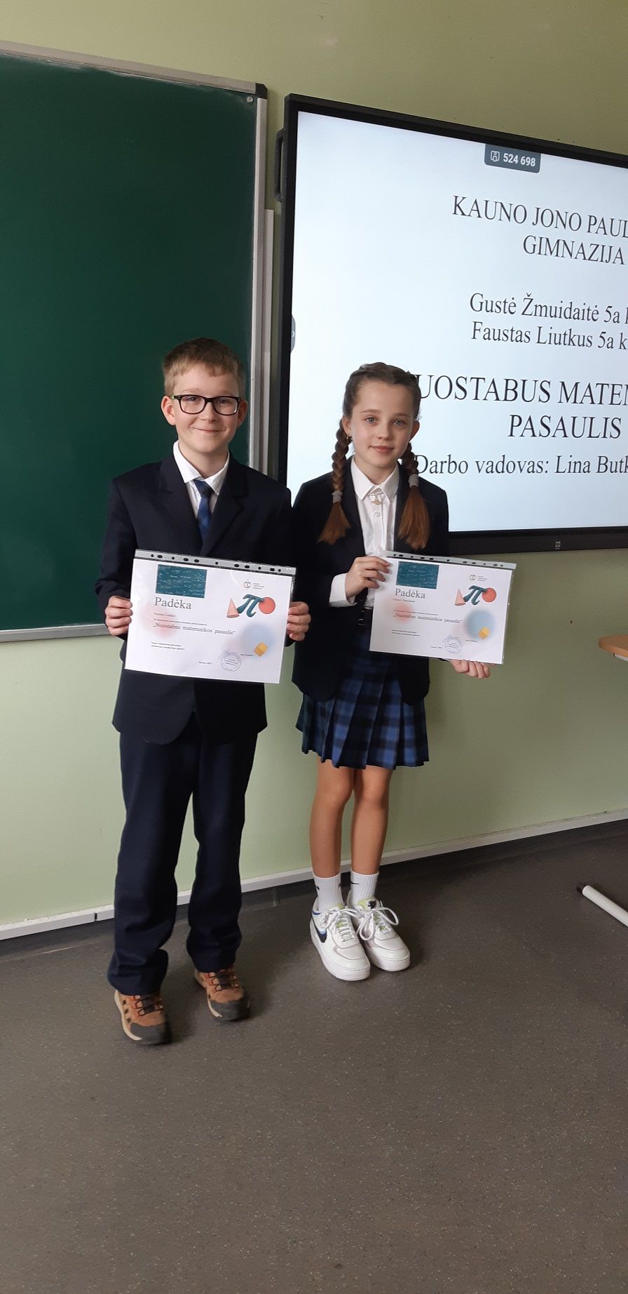 Šiame konkurse šauniai pasirodė 5 a klasės mokiniai Gustė Žmuidaitė ir Faustas Liutkus.