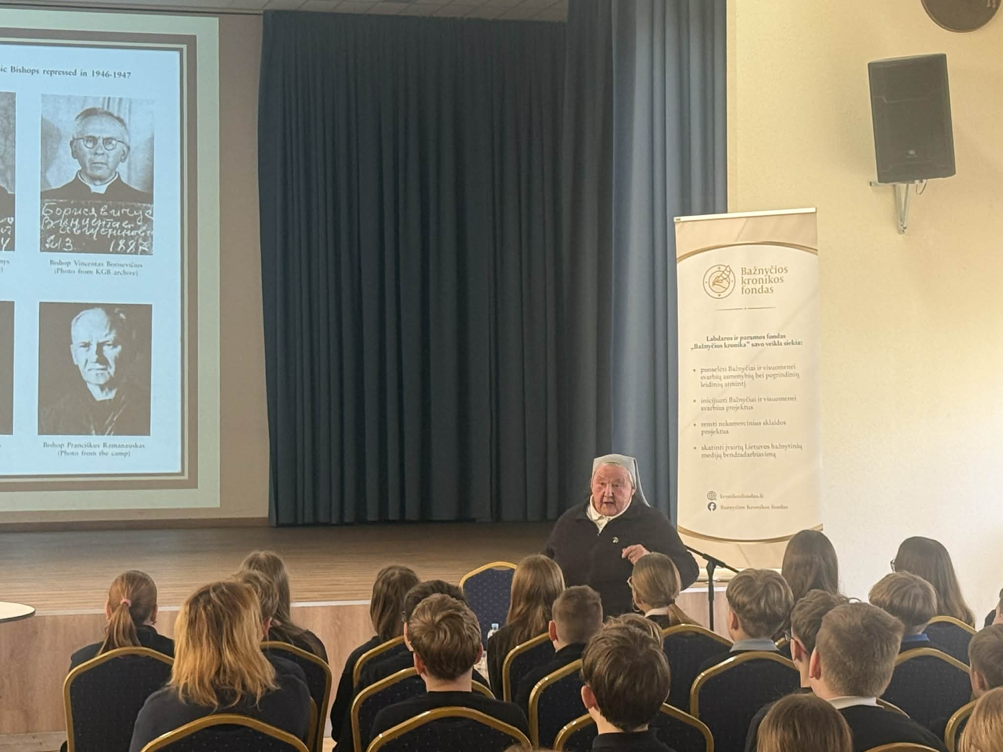 Kovo 19-ąją prisiminėme pirmojo „Lietuvos Katalikų Bažnyčios kronikos“ numerio pasirodymą – drąsos ir tiesos liudijimą, pasiekusį laisvąjį pasaulį. Paminint šią dieną, Kauno Jono Pauliaus II gimnazijoje su beveik 350 mokinių susitiko Bažnyčios kronikos fondo atstovai. Moksleiviai išgirdo gyvus liudijimus apie laikus, kai buvo slopinamas laisvas žodis ir tikėjimas, o už drąsą kalbėti teko patirti persekiojimus. Apie „Kronikos“ leidimo patirtis įtaigiai pasakojo ses. Regina Edita Teresiūtė, o vyresniųjų klasių mokiniams J. Em. kardinolas Sigitas Tamkevičius SJ priminė tikėjimo, laisvės ir žmogaus teisių gynimo svarbą net sudėtingiausiomis sąlygomis. Susitikimai paliko gilų įspūdį – mokiniai susidomėję klausėsi, aktyviai dalyvavo ir dar kartą prisiminė, kokia brangi yra laisvė, tikėjimas ir atsakomybė tai saugoti. Dėkojame svečiams už įkvepiančius liudijimus.