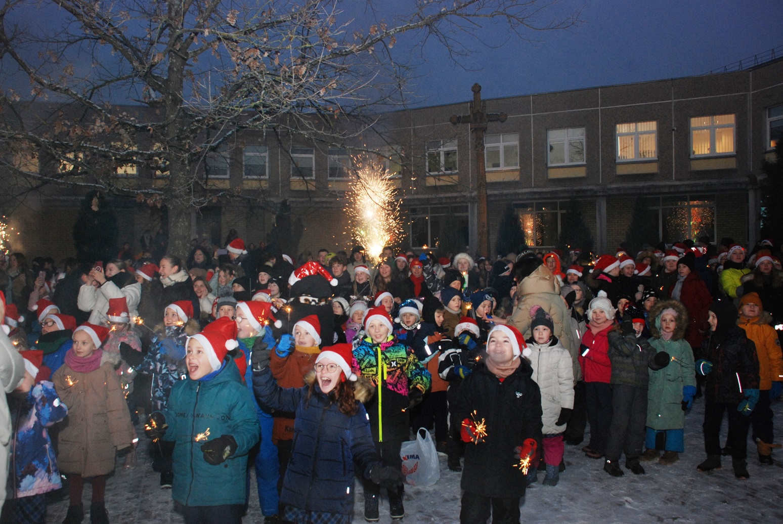 Gruodžio 6 d. per šv. Mikalojų įžiebėme eglutę Kauno Jono Pauliaus II gimnazijos kiemelyje
