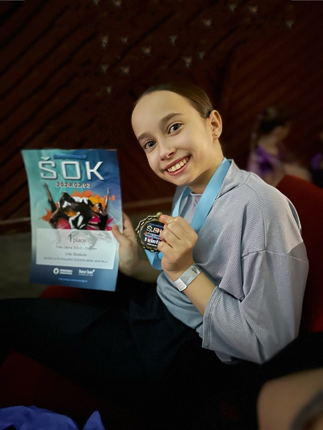 Šokių festivalyje "ŠOK" 4a klasės mokinė Urtė Stoškutė laimėjo 1 vietą "Free Dance" SOLO kategorijoje.