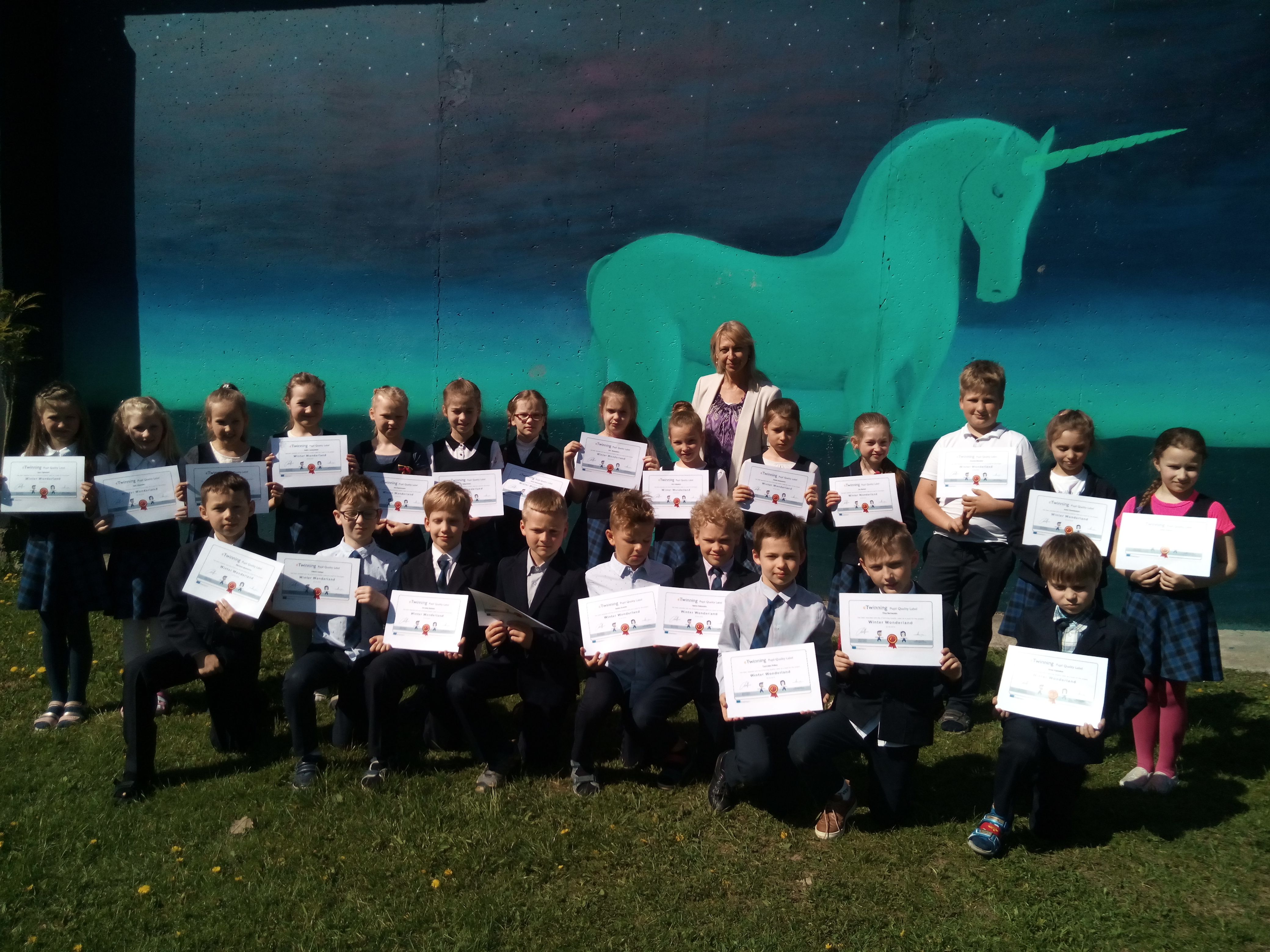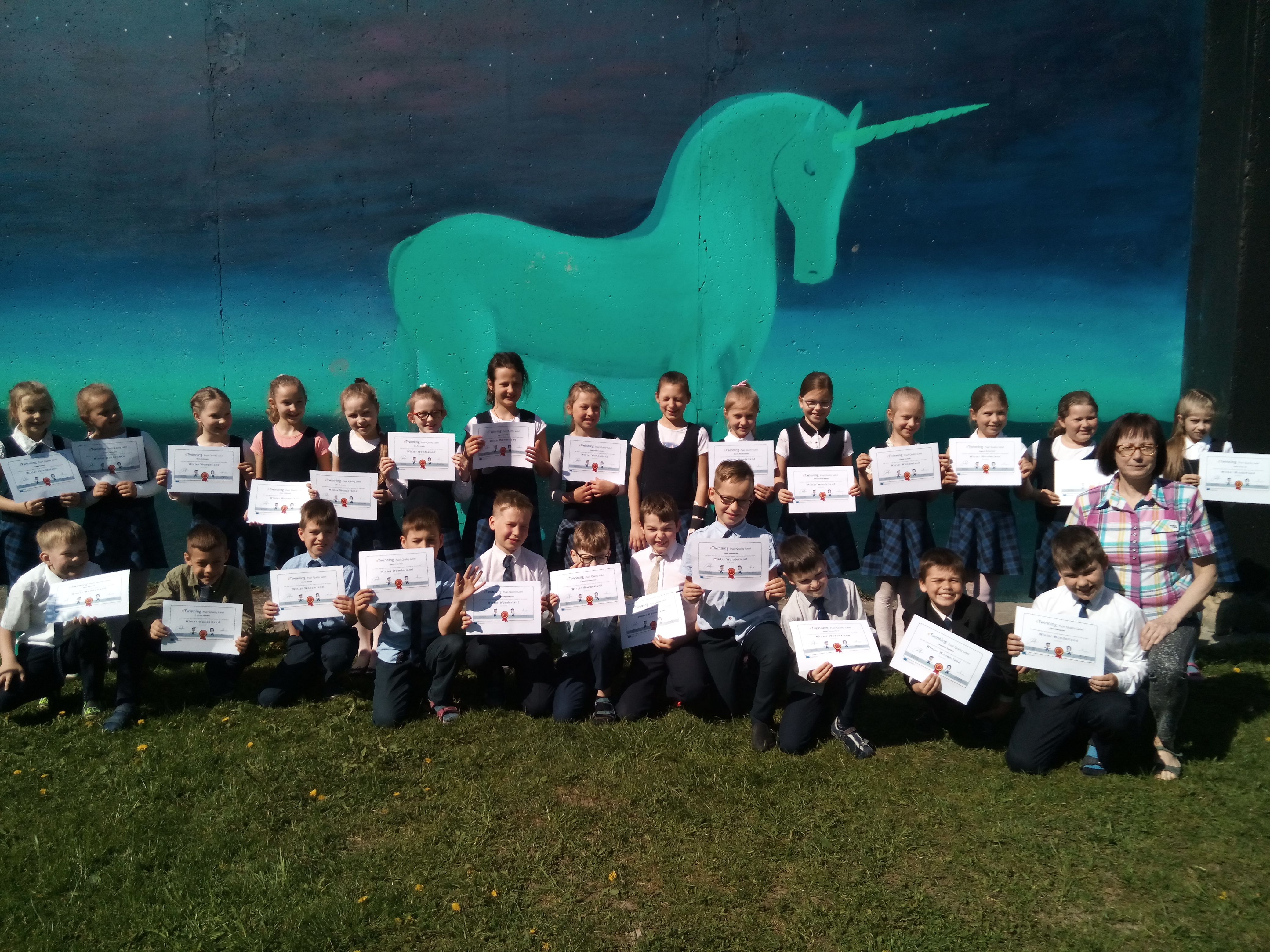 Tarptautinio eTwinning projekto „Man patinka žiema“ (angl. “Winter Wonderland“) baigiamajame renginyje Lenkijoje, Bialystoko šv.Kirilo ir Metodijaus gimnazijoje, šių metų gegužės 11 dieną susitiko projekto partneriai iš penkių Lietuvos ir Lenkijos mokyklų. Keturiolika 2c ir 2d klasių pradinukų kartu su direktorės pavaduotoja Renata Baršukaitiene, klasių mokytojomis Edita Miliušiene , Danute Guigiene, anglų kalbos mokytojomis Larisa Baroniene bei Vitalija Mikšyte dalyvavo atvirose integruotose pamokose šv. Kirilo ir Metodijaus gimnazijoje bei Bialystoko sporto arenoje.
